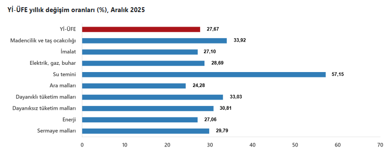 TÜİK tarafından Açıklanan Aralık Ayı Üretici Fiyatları Verisi